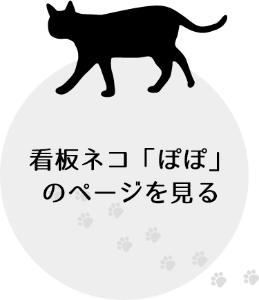看板ネコの「ぽぽ」と一緒に、皆様のお越しを楽しみにお待ちしています。